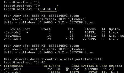 添加一塊盤,使用命令查看現在分區情況,判斷根分區