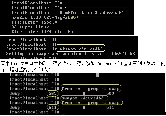 格式化 /dev/sdb1 設備為ext3類型的設備,格式化 /dev/sdb2為swap文件系統。