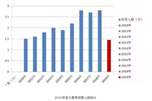 10月22日,2019年國考報名開始,但是準備報考的同學們要注意了!今年可能是歷年來競爭最慘烈的一次國考:據統計,本次國考招錄人數1.45萬,比2018年減少了近50%,是自2010年以來的最低數值。