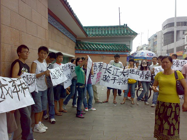 【編者按】二級學(xué)院是大學(xué)擴(kuò)招的衍生物,是商品教育的副產(chǎn)品。它以所屬大學(xué)的名義不負(fù)責(zé)任地號稱“三本”,并以“同等學(xué)歷”以及“同一型號的畢業(yè)證”為引誘,致使一大批沒有達(dá)到本科分?jǐn)?shù)線的學(xué)生以高額的學(xué)費為代價,進(jìn)入“三本”原“本科之夢”,然而,長江大學(xué)文理學(xué)院的264名本科學(xué)生卻被迫以專科學(xué)籍畢業(yè),在國家政策及多方壓力下,264名學(xué)生的悲劇是一種必然。但是,學(xué)生沒有錯!讀書沒有錯!維權(quán)沒有錯!呼吁大家關(guān)注他們,多一份民間的支持!我們要知道,全國還有多少譬如長江大學(xué)文理學(xué)院之類的二級學(xué)院的學(xué)生已經(jīng)或正在或即將面臨與他們一樣的命運——