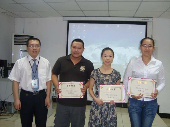 這次PPT大賽,我們請來了教質部經理張美薇老師、學術部經理閆發軍老師以及高旭老師、朱璐璐老師、賈海蓮老師、劉彥芬老師作為評委。比賽一共分為五組,這次比賽的主題分別是:中國的傳統節日、北京族游景點、太陽系、環保、南沙軍事。從比賽的情況來看,每一組在組長的帶領下都做了充分的準備,每一個組員都有明確的分工和任務:找圖片的、準備音樂的、搜集文字資料的。在這次比賽中,大家各展風采,有感動、有歡笑、也有激情,同時,評委老師精確到位的點評,讓學員意識到自已存在的不足,相信在以后的活動中,同學們都能夠揚長避短,展現更為精彩的一面。